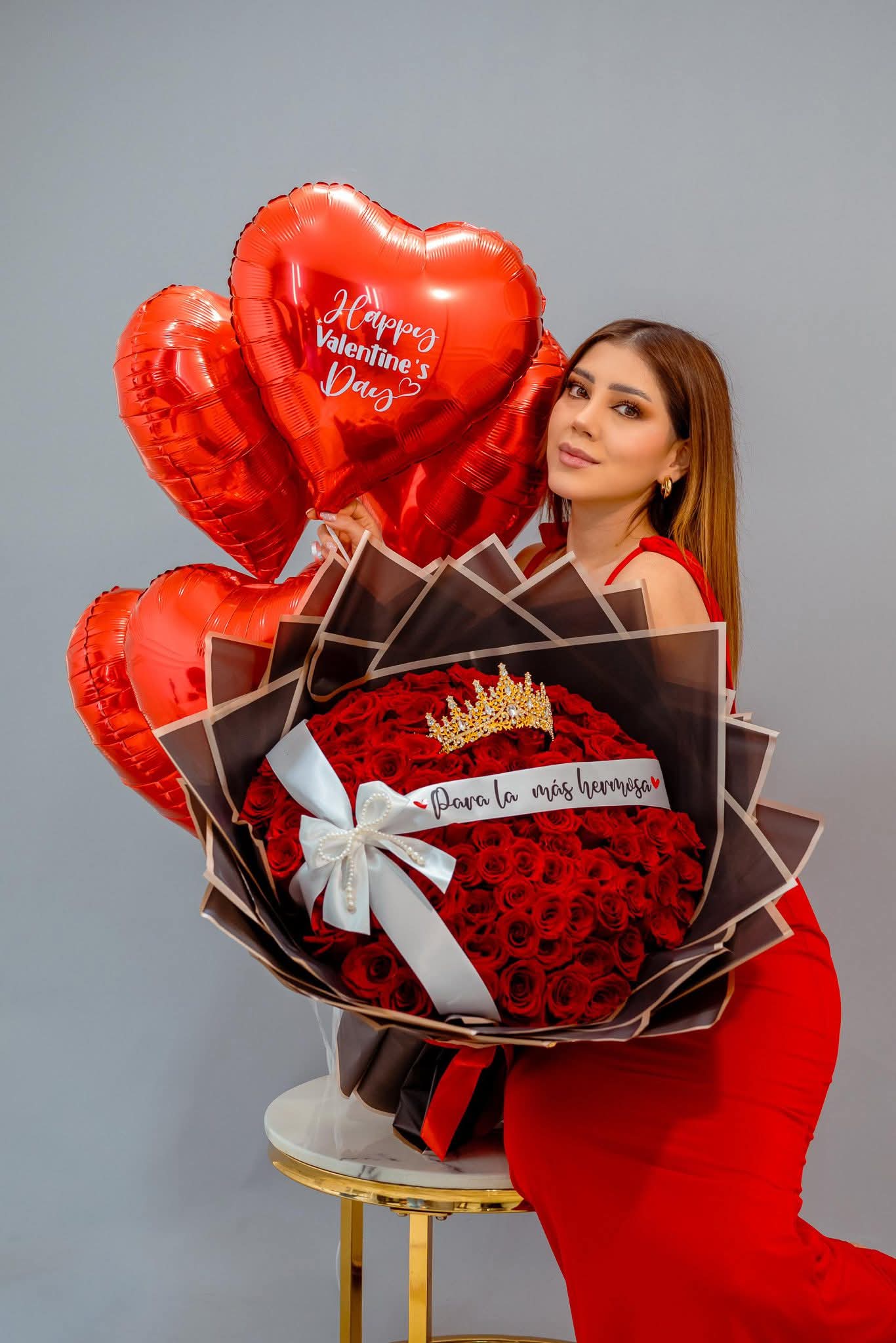 Divertido y colorido arreglo floral acompañado de globos decorativos. Una combinación perfecta para celebrar el amor y la amistad con mucha alegría.